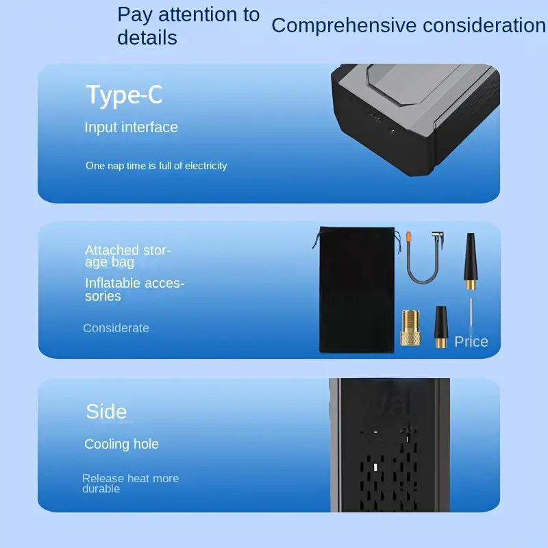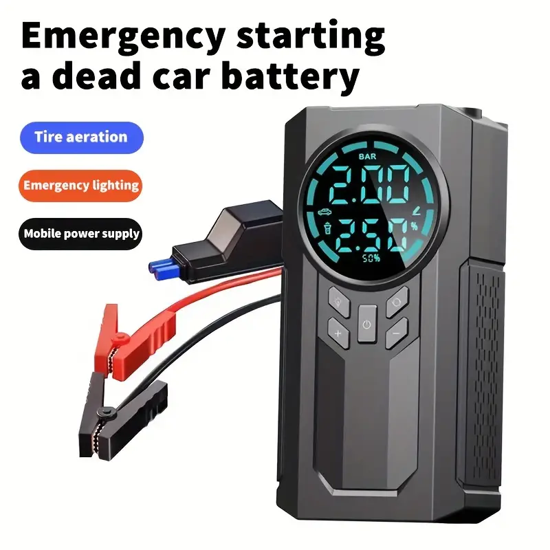 • "تشغيل الطوارئ المحمول: جهاز تشغيل الطوارئ يأتي بقوة عالية لتشغيل السيارات والشاحنات في حالات الطوارئ بسهولة وسرعة. • ضاغط هواء مدمج: يتميز بضاغط هواء مدمج لنفخ الإطارات في الحالات الطارئة، مما يجعله أداة متعددة الاستخدامات في سيارتك. • بطارية قوية: يحتوي على بطارية قوية توفر تيارًا قويًا لتشغيل محركات البنزين والديزل. • منافذ شحن متعددة: مزود بمنافذ USB لشحن الأجهزة المحمولة والإلكترونيات الأخرى، مما يجعله مثاليًا للاستخدام أثناء التنقل. • تصميم متين ومحمول: تصميم خفيف الوزن وسهل الحمل، يمكنك وضعه في سيارتك واستخدامه عند الحاجة. • إضاءة LED مدمجة: يأتي مع مصباح LED لتوفير الإضاءة في الظلام، مما يزيد من فائدته في حالات الطوارئ الليلية." • "تشغيل الطوارئ المحمول: جهاز تشغيل الطوارئ يأتي بقوة عالية لتشغيل السيارات والشاحنات في حالات الطوارئ بسهولة وسرعة. • ضاغط هواء مدمج: يتميز بضاغط هواء مدمج لنفخ الإطارات في الحالات الطارئة، مما يجعله أداة متعددة الاستخدامات في سيارتك. • بطارية قوية: يحتوي على بطارية قوية توفر تيارًا قويًا لتشغيل محركات البنزين والديزل. • منافذ شحن متعددة: مزود بمنافذ USB لشحن الأجهزة المحمولة والإلكترونيات الأخرى، مما يجعله مثاليًا للاستخدام أثناء التنقل. • تصميم متين ومحمول: تصميم خفيف الوزن وسهل الحمل، يمكنك وضعه في سيارتك واستخدامه عند الحاجة. • إضاءة LED مدمجة: يأتي مع مصباح LED لتوفير الإضاءة في الظلام، مما يزيد من فائدته في حالات الطوارئ الليلية."