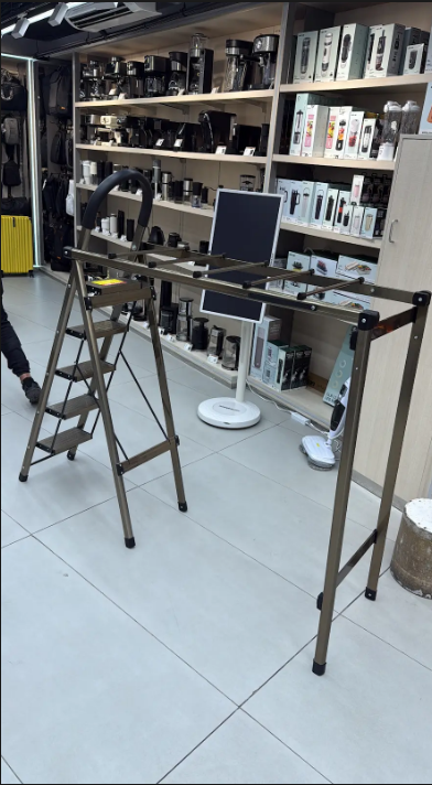 سلم قابل للطي متعدد الاشكال الجملة التسويقية: سُلَّم ومنشر بقطعة وحدة! يرتّب شغلك ويرفّعك بأمان ويشفّط الغسيل بسرعة وفّر مساحة ووقت مع الحل الذكي لبيتكم. 🪜👕✨ ليش هذا غير عن غيره؟ وظيفتين أساسيتين في منتج واحد (سُلّم + منشر كامل)—يوفّر عليك شراء قطعتين ومساحة التخزين. 🧠 تحمّل 150 كجم مع تقويات عرضية يعطيك ثبات ما تحصل عليه غالبًا في المناشير العادية. 🛡️ درجات عريضة مريحة تقلّل تعب القدم وتخلّيك تشتغل أطول بأمان. 🦶 مقبض علوي مبطّن للراحة—تفصيل عملي نادر في المنافسين. ✨ مقاوِم للصدأ بالكامل: مناسب للأماكن الرطبة قرب الغسالة أو في الشرفة. 🌧️ المميزات تصميم 2-في-1: سُلَّم 4 درجات + منشر ملابس علوي قابل للطي—تنجز أعمال البيت وتعلّق الغسيل من نفس القطعة. 🛠️👚 تحمّل عالي: يشيل لحد 150 كجم بثبات، مناسب للاستخدام اليومي داخل البيت أو في السطح/الحوش. 💪 ألمنيوم مقاوِم للصدأ: سبائك ألمنيوم خفيفة وقويّة، مقاومة للتآكل والماء—عمر أطول وأمان أكثر. 🧼🚿 درجات عريضة مانعة للانزلاق مع تقوية عرضية—وقفة ثابتة حتى مع الاستخدام الطويل. 🦶🔒 مقابض علوية مبطّنة فوم لراحة اليد والتحكّم أثناء الصعود والنزول. ✋🧽 ارتفاع قابل للتعديل في جزء المنشر عشان تضبطه حسب قطع الغسيل الطويلة أو القصيرة. 📏 قضبان سفلية للأحذية/الجوارب للتجفيف أو التخزين المؤقّت. 👟🧦 يطوي بسرعة لحجم مُدمج—تخزّنه خلف الباب أو جنب الغسالة بسهولة. 📦 أقدام مطاطية تحمي السيراميك وتمنع الانزلاق. 🧩 وزن خفيف وسهل النقل رغم القوة—تنقله من غرفة لغرفة بدون تعب. 🚚 تفاصيل سريعة الخامة: سبائك ألمنيوم + بلاستيك متين. 🧱 حمولة قصوى: 150 كجم. ⚖️ عدد الدرجات: 4 درجات. 🪜 المقاس عند الاستخدام: تقريبًا طول 159–160 سم × عرض 37 سم × ارتفاع 142 سم. 📐 المقاس عند الطيّ: ارتفاع 142 سم × عرض 37 سم. 🧳 منطقة منشر علوية: طول حوالي 113 سم، عرض 48 سم. 👕 الاستخدام: داخلي وخارجي (شرفة، سطح، حوش). 🏠